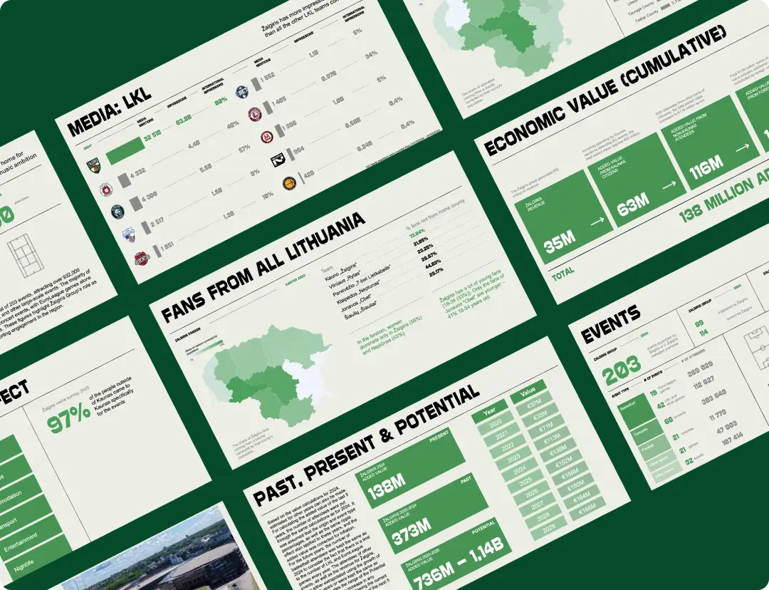 „Žalgiris Group“ siekia aktyviai formuoti Lietuvos sporto ir pramogų aplinką, kurdama reikšmingas patirtis, įtraukdama sirgalius, plėtodama sveikatingumo programas, socialines iniciatyvas ir darydama pastebimą ekonominį poveikį. Šiame pranešime nagrinėjamas „Žalgiris Group“ poveikis Kauno ir visos Lietuvos ekonomikai 2024 m. Vertinami ne tik finansiniai rezultatai, bet ir įtaka gyvenimo kokybei, bendruomenės gerovei bei Lietuvos įvaizdžiui šalies viduje ir tarptautiniu mastu, akcentuojant platesnį grupės kultūrinį ir ekonominį vaidmenį Kaune ir Lietuvoje.
